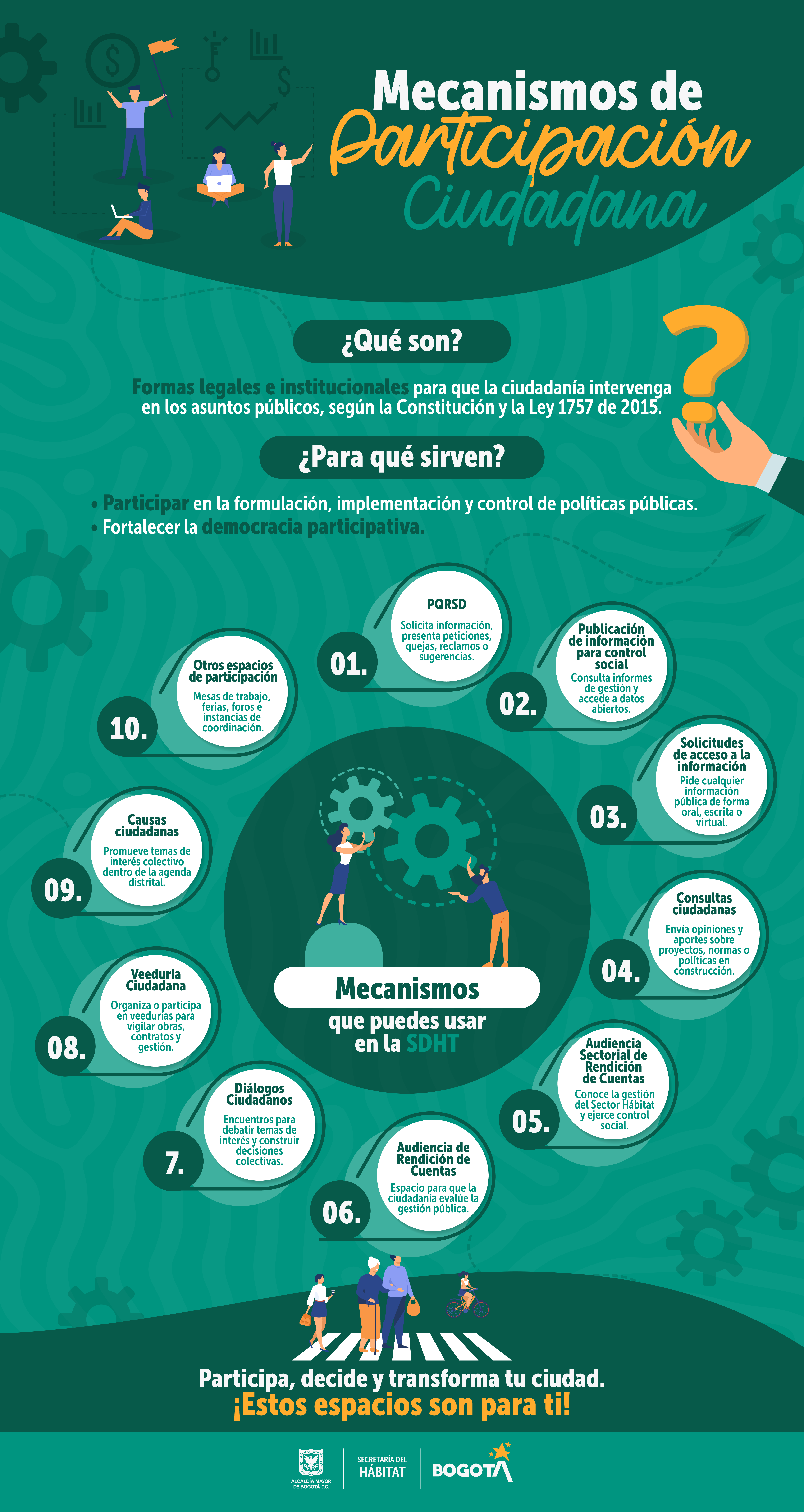 Participa es la sección donde encontrarás toda la información sobre los espacios, mecanismos y acciones dispuestos por la Secretaría Distrital del Hábitat.